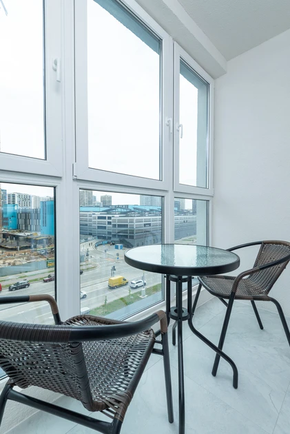 Cozy studio apartment available for short-term rental in the Minsk-World complex at 9 Bratskaya Str. It is located on the 6th floor of a 10-story building equipped with an elevator.