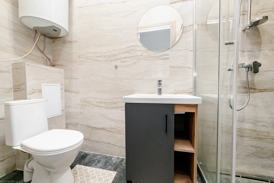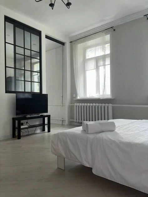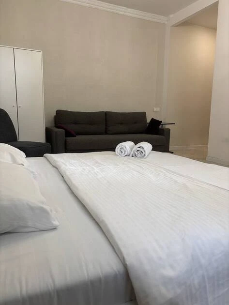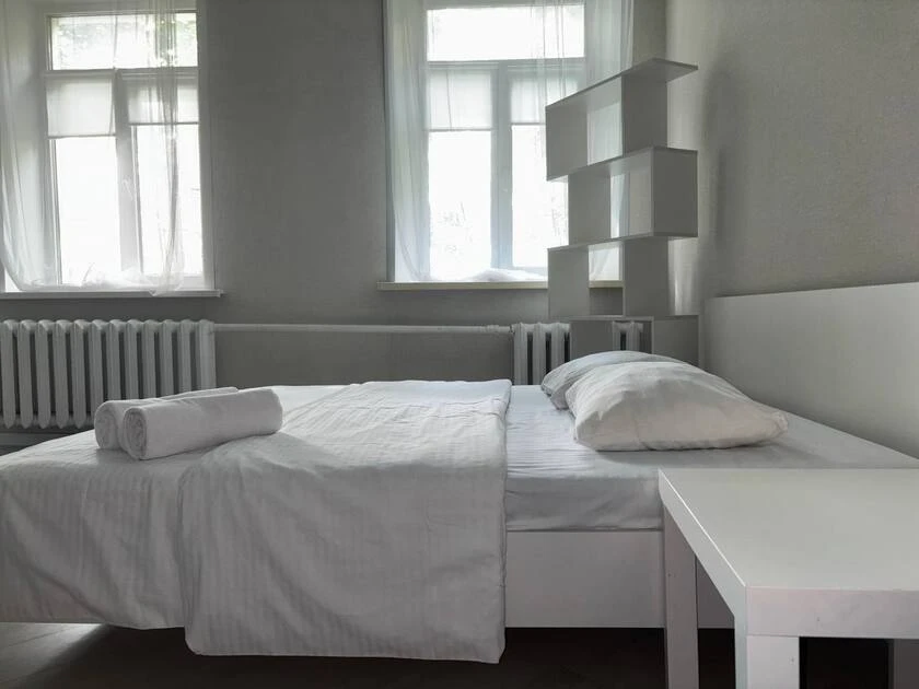 Cozy studio apartment available for short-term rental in Minsk at 2 Amuratorskaya Str. It is located on the 2nd floor of a 2-story building.